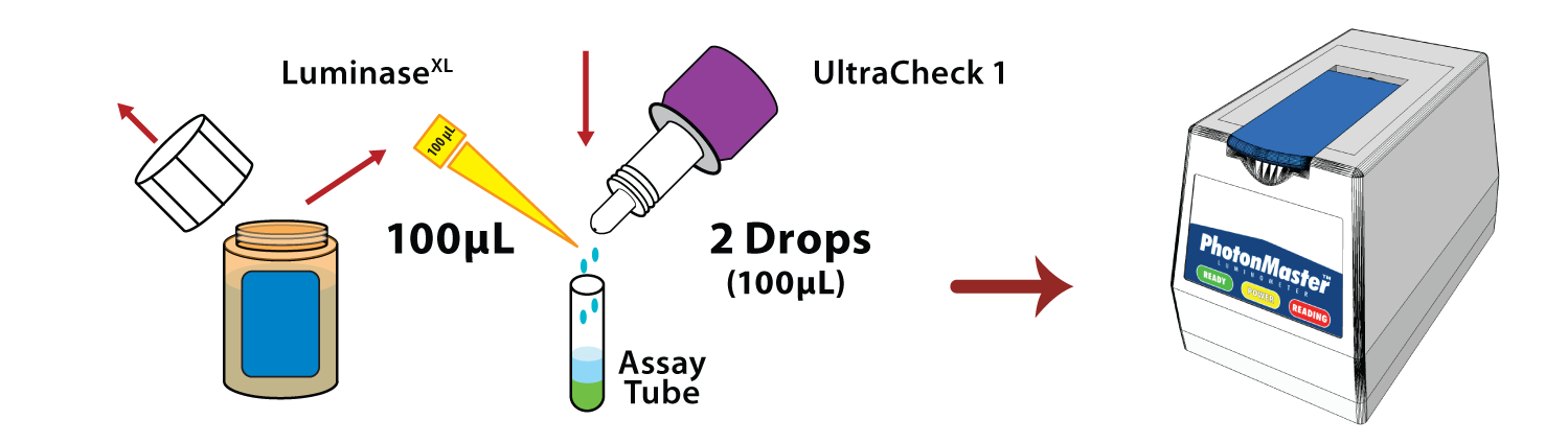 Hold the UltraCheck 1 bottle vertical and add 2 drops (100µL) of it to a 12x55mm test tube.